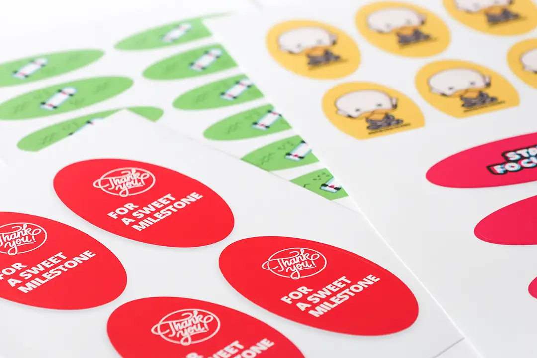 מחפשים דרך קלה למתג את המוצרים שלכם? בעזרת דפי תוויות אליפסיות תוכלו למתג כל מוצר בקלות, צנצנות, בקבוקים, קופסאות וכל מוצר עליו תרצו להטביע את לוגו החברה שלכם. דף המדבקות שלנו מגיע בגודל A4 ועשוי מויניל איכותי בעל ציפוי עמיד בשריטות (לא למינציה), ובכך עמיד גם לתנאי חוץ. שלחו לנו קובץ, בחרו גודל וכמות, ואנחנו נדאג לשאר.
